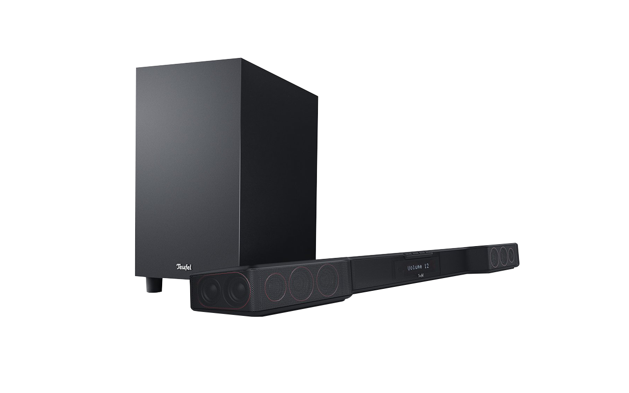 Das volle Soundprogramm bei schlankem Äußerem bringt die Soundbar Teufel Duett mit ihrem per Funk angebundenen Subwoofer zum Klingen. Virtueller Surroundsound und Musikstreaming inklusive.
