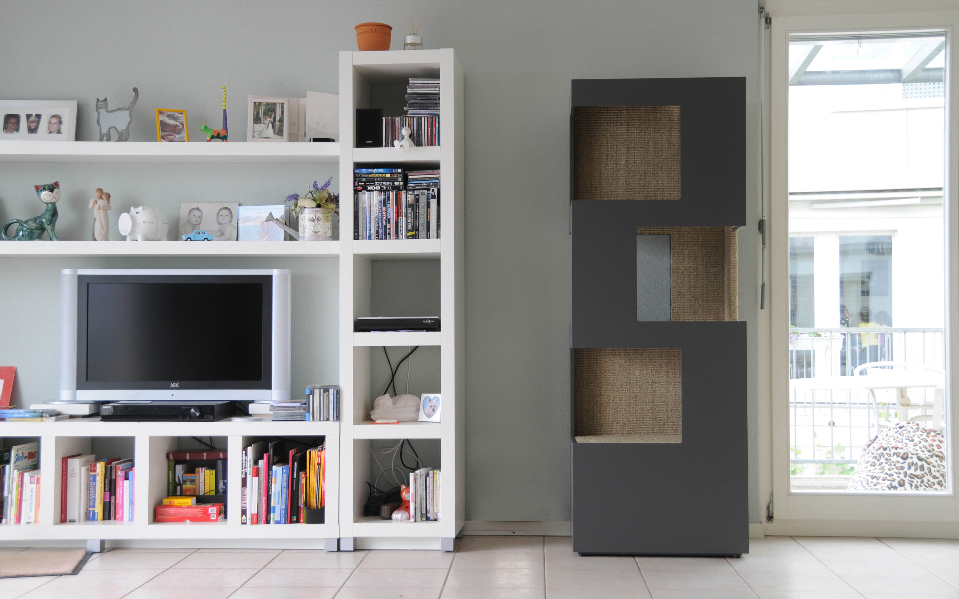 THE ONE-Katzentürme werden in aufwändiger und sorgfältiger Handarbeit aus hochwertigen und mit kratzfestem Lack lackierten MDF-Platten sowie besonders robustem Sisal gefertigt. Durch sein Eigengewicht ist der Katzenturm besonders standfest und benötigt keine zusätzliche Wandbefestigung. Daher kann er beliebig im Wohnraum positioniert werden. Aufgrund mehrerer Ebenen, der Aussichtsplattform und den Durchstiegen bietet der Turm zahlreiche Möglichkeiten sich zurückzuziehen, auszutoben oder das gesamte Areal zu überwachen. Der Katzenturm THE ONE ist ein echtes Designobjekt, das aus jeder Perspektive anders aussieht und sich in jedes moderne Zuhause perfekt integriert. The ONE produziert die Katzentürme in zwei Größen und in zahlreichen Farbvarianten, sogar Sonderanfertigungen sind möglich.
