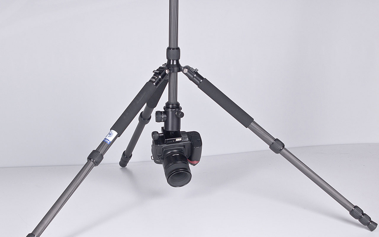 Das Tiltall Dreibeinstativ TC254 ist aus Carbon gefertigt, was Stabilität und Qualität sichert. Es überzeugt außerdem durch Bedienungsfreundlichkeit und Funktionalität. Die Beine des Tiltall bestehen aus vier Segmenten, wobei die oberen Segmente ummantelt sind. Die Arretierung der Beinsegmente erfolgt durch Drehverschlüsse. Mit der maximalen Belastung von 8 kg ist das TC 254 für mittelgroße DSLR-Kameras und Videokameras geeignet. Um die Kamera nicht nur stabil, sondern möglichst bodennah platzieren zu können, kann der Anwender beim TC 254 die Mittelsäule entfernen und die Stativbeine fast waagerecht ausklappen Dank selbstarretierender Entriegelungstasten ist das schnell und einfach möglich. Wenn es noch näher an den Boden gehen soll, lässt sich die Mittelsäule ohne Werkzeug auch umstecken. Neben vielen Einstell- und Anpassungsmöglichkeiten bietet das Tiltall TC254 ein weiteres interessantes Detail: Die Gummifuß-/Spike-Kombination. Der glatte Spike wird aus der Gummikappe herausgedreht. So gibt es kein offen liegendes Gewinde, in das möglicherweise Schmutz eindringen kann.