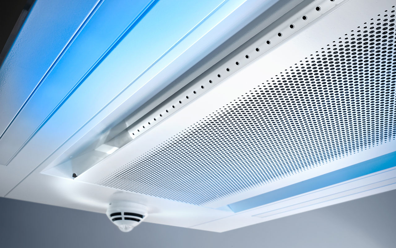 Die Deckeninduktionsdurchlässe DID642 von Trox verfügen über hohe Qualität, Bedienkomfort, Funktionalität und berücksichtigen auch Designaspekte. Die hohe Qualität des Luft-Wasser-Systems wird jährlich durch eine unabhängige Überprüfung der technischen Daten gewährleistet. Im Inneren wir induzierte Sekundärluft gekühlt oder gewärmt – abhängig von den Anforderungen der Jahreszeit – und mit Primärluft gemischt, bevor sie wieder an den Raum abgegeben wird. Das Design wurde besonders flach gestaltet, um eine möglichst große Bandbreite an Einbaumöglichkeiten zu erzielen. Die auslaufende Lochung im Induktionsfilter sorgt für einen gleitenden Übergang des Durchlasses zur Decke und bindet ihn so optisch in die Decke ein.