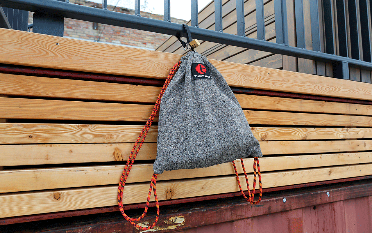 Der Trustbag Beutel der gleichnamigen Marke ist eine Innovation mit hoher Qualität und Design. Der Trustbag dient der sicheren Aufbewahrung verschiedener wertvoller Gegenstände unterwegs. Das Material besteht aus hochmolekularem Polyethylen und wird ausschließlich im militärischen Umfeld verwendet. Der Trustbag ist reiß- und schnittfest sowie Wasser abweisend. Im Innern des Beutels befindet sich eine kleinere Innentasche. Diese Tasche ist zu 100% wasserfest und blockiert außerdem RFID. Damit sind auch digitale Daten, Kreditkarten und ähnliches vor unbefugtem Zugriff geschützt. Als zusätzliche Sicherheitseinrichtungen verfügt der Trustbag über ein Kombinationsschloss mit individuellem Code sowie einen Gürtel mit innenliegenden Sicherungen.