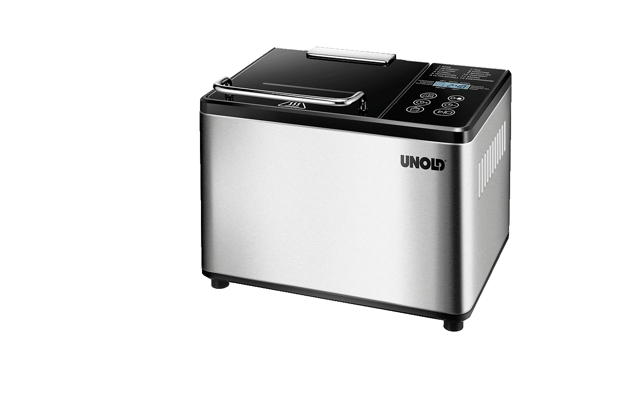 Der Hype der Brotbackmaschinen ist zwar vorbei, aber out sind sie deshalb noch lange nicht. Erst recht nicht, wenn sie sich elegant in die Küchenumgebung einfügen wie der Unold Backmeister Kompakt mit seinem schwarz abgesetzten Edelstahlgehäuse. Der Automat mit seiner mit Whitford-Keramik beschichteten Backform kann bis zu 13 Stunden im Voraus auf zehn Brotprogramme, ein Programm für Marmeladen und Konfitüren sowie ein Individualprogramm eingestellt werden. Danach hält er das fertige Produkt bis zu 60 Minuten lang warm, wenn der Weg aus dem Bett an den Frühstückstisch mal besonders lang ist. Bei Stromausfall merkt sich der Backmeister Kompakt bis zu 20 Minuten lang, an welcher Stelle er stehen geblieben ist, und ein Sensor-Bedienfeld mit LCD-Anzeige erleichtert Bedienung wie Reinigung ungemein.