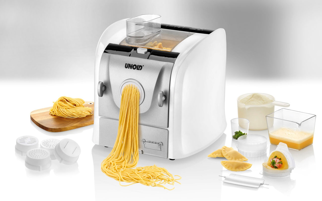 Den ganz anderen Genuss, den frische Nudeln bieten, kann jeder mit dem Unold Nudelmeister Pasta automatisch im Handumdrehen genießen. Innerhalb von nur zehn Minuten sind fünf verschiedene Nudelsorten angefertigt, um als Basis für eine leckere Mahlzeit dienen.
