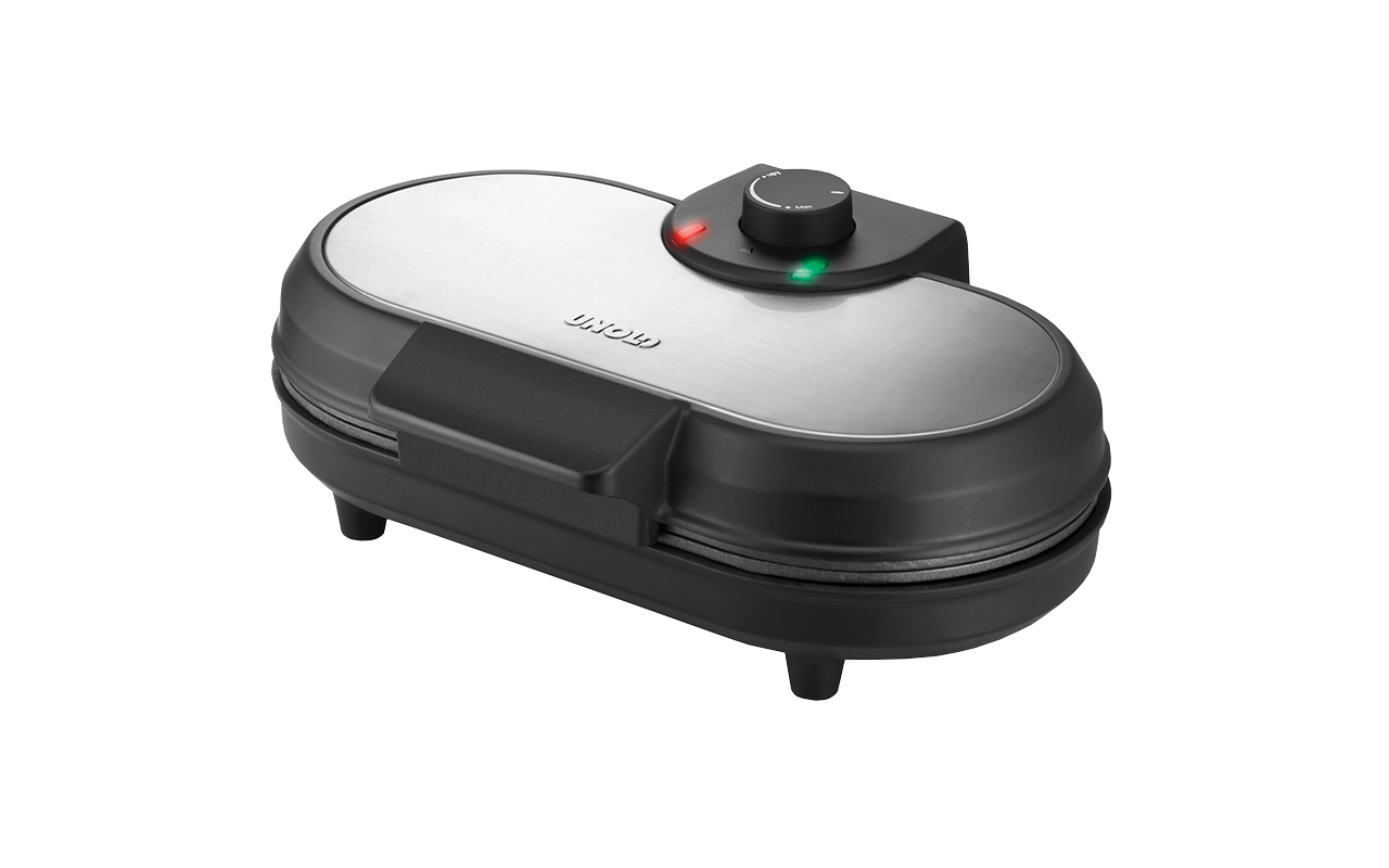 Mit dem Unold Pancake-Maker American können zwei leckere Pancakes zeitgleich und fettarm zubereitet werden. Durch eine Druckguss-Aluminium-Platte mit Antihaft-Beschichtung in den beiden Mulden und der Teigauffangrinne ist die Reinigung super einfach.