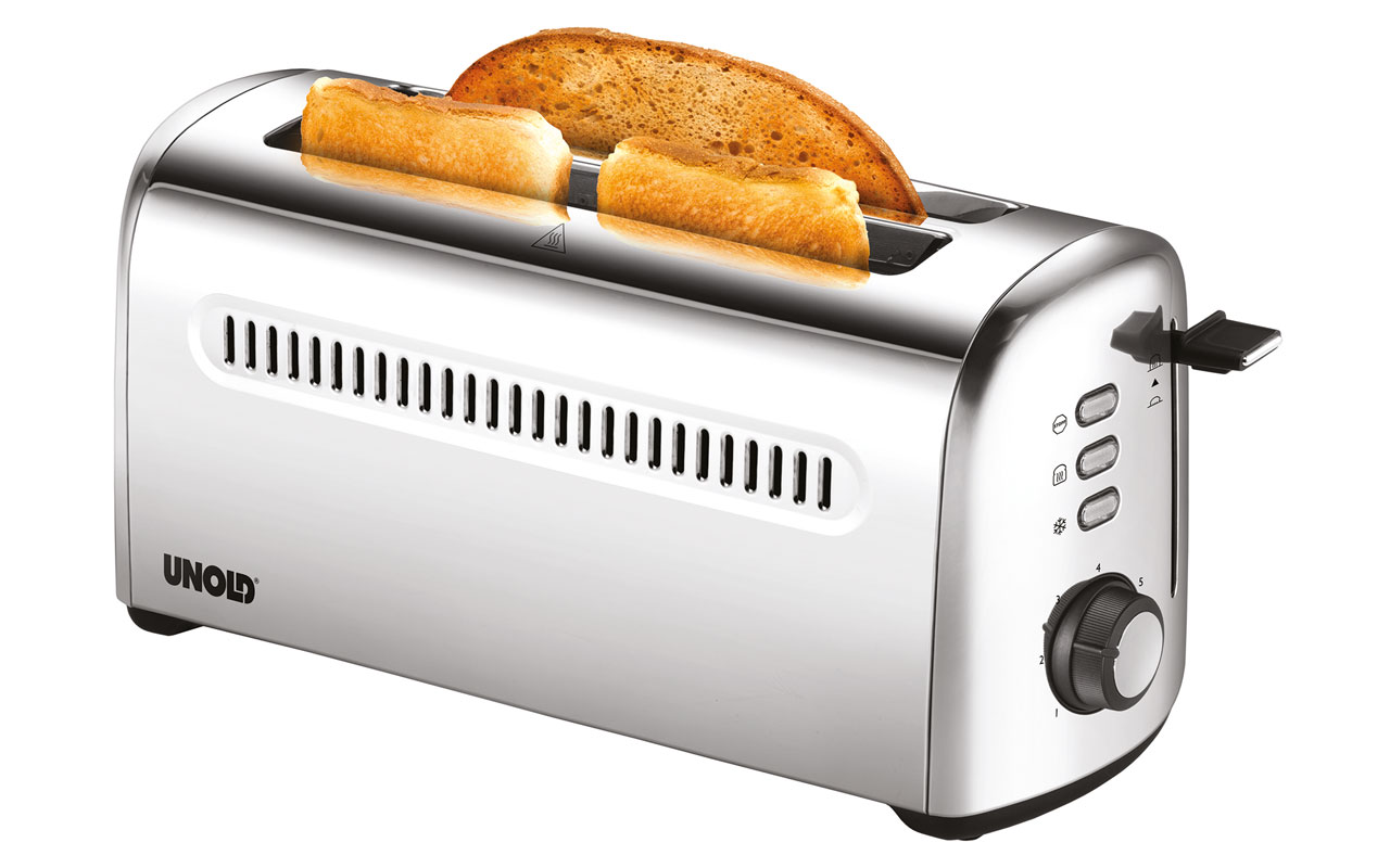Mit dem Toaster 4er Retro hat Unold ein Küchengerät für den Retro-Trend geschaffen. Der Toaster im hochwertigen Edelstahlgehäuse fasst 4 Scheiben Toast, wahlweise aber auch dickere Brotscheiben oder sogar Bagels. 7 Röstgrade sind einstellbar.