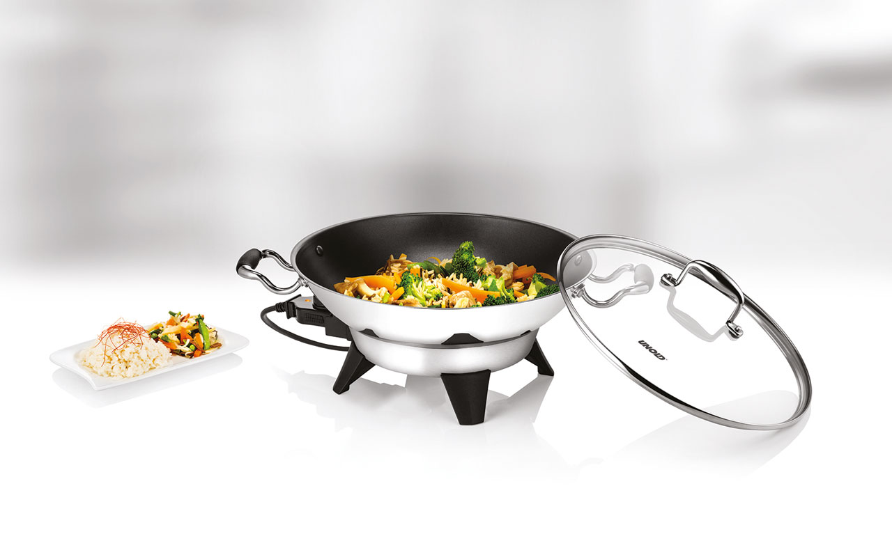 + elektrischer Wok mit stufenloser Temperatureinstellung von 80° C bis 210° C