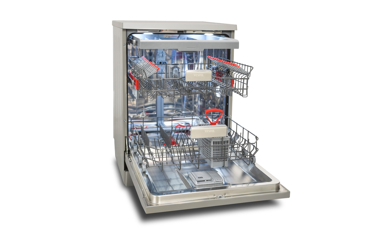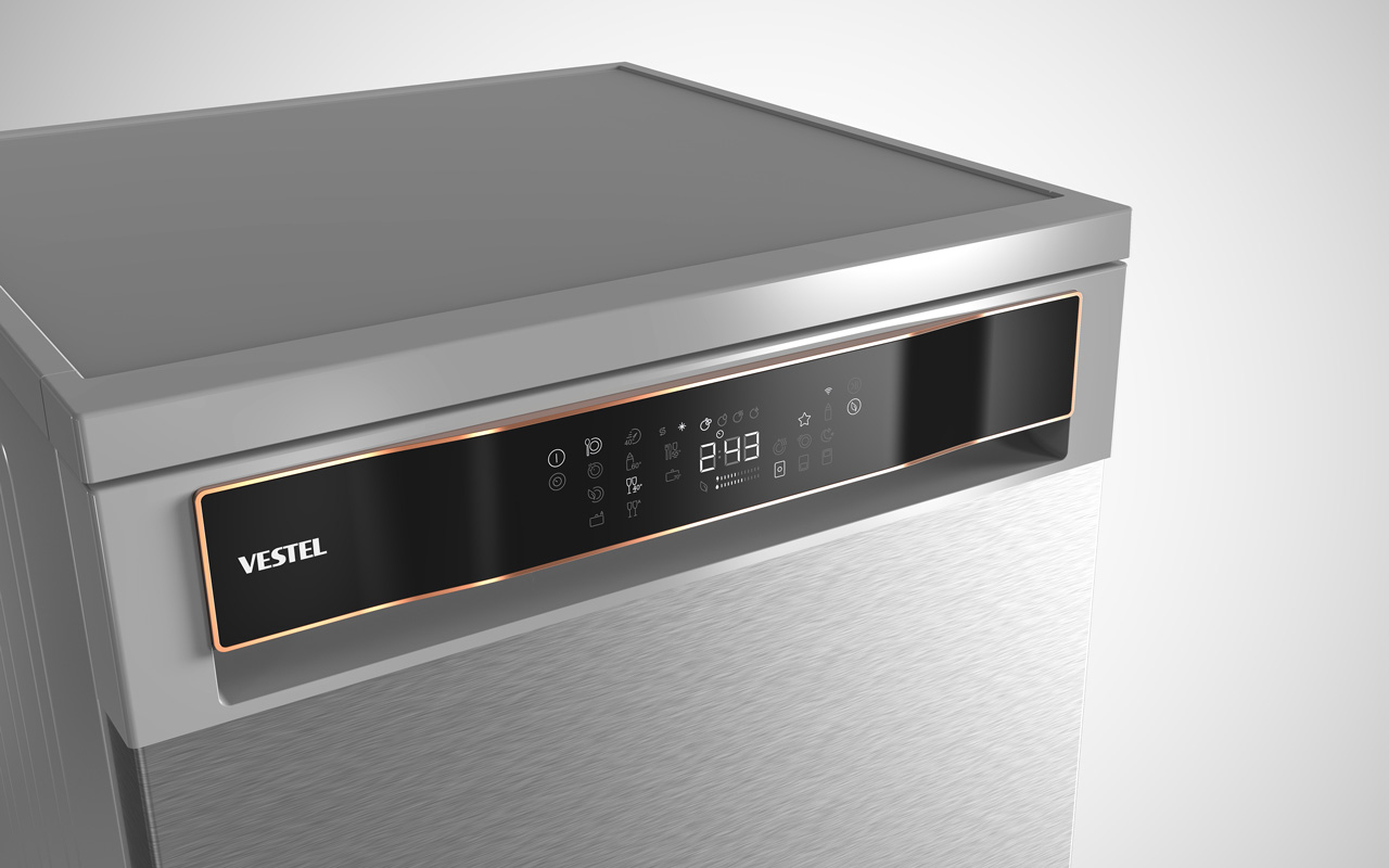 Die A40 Spülmaschine von Vestel zeichnet sich durch ihre hohe Qualität, das Design und die Bedienungsfreundlichkeit aus. Die Front des A40 ist ganz in Schwarz gehalten und mit einem kupferfarbenen Rand versehen. Das Bedienfeld ist im Design reduziert und ganz auf die Funktionalität ausgerichtet. Alle Funktionen warden als Piktogramme dargestellt und sind so leicht verständlich. Als Teil der Vestel-Familie von Spülmaschinen bietet auch die A40 alle Funktionen, die für die gründliche und schonende Reinigung von Geschirr, Gläsern und Besteck benötigt werden.