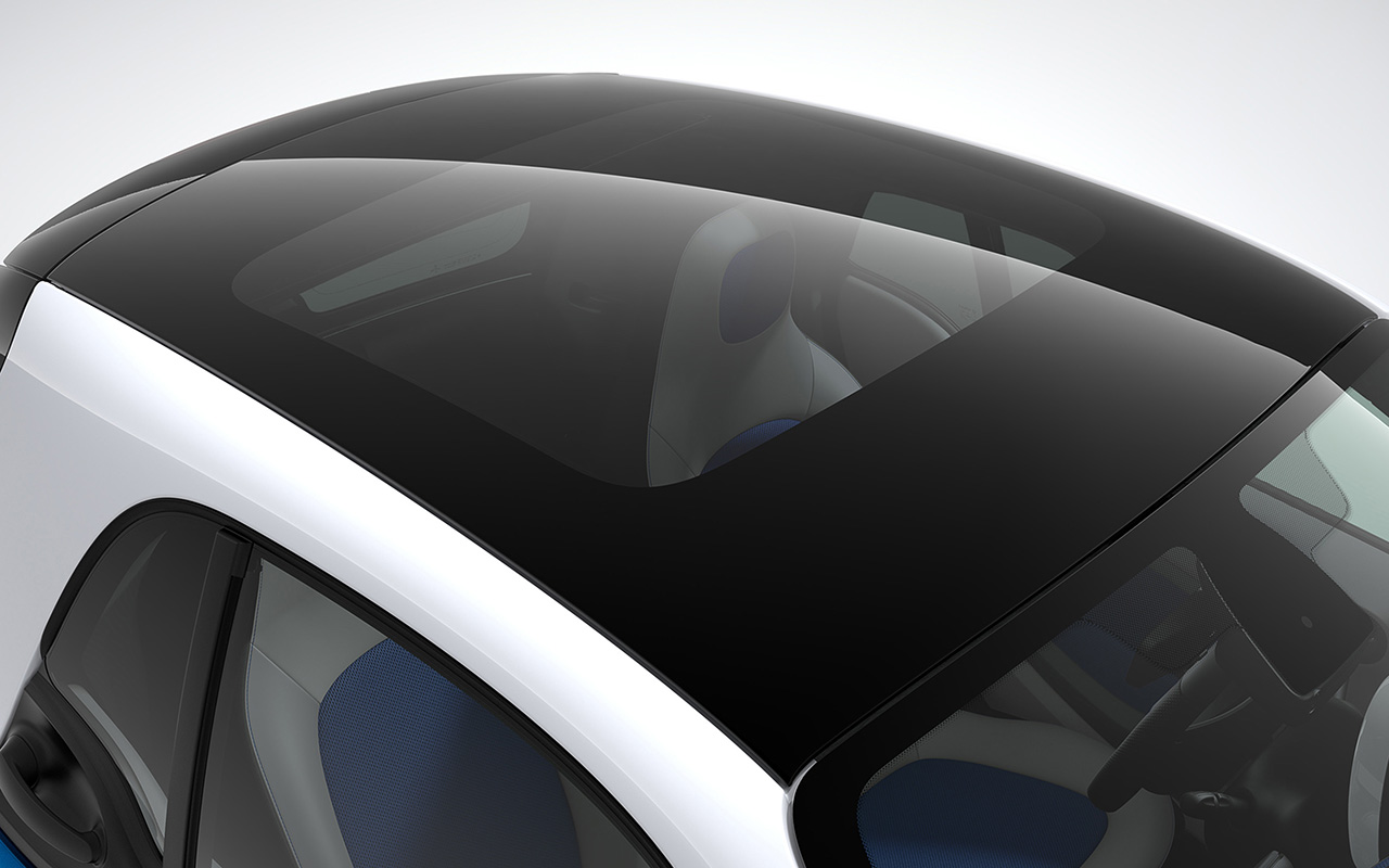 Licht lässt jeden Raum größer erscheinen, auch den Innenraum eines Autos. Mit dem Webasto Panoramadach mit Infrarot-Absorption bringt der Marktführer für Dachsysteme und Klimaanlagen ein Panoramadach auf den Markt, in dessen Basismaterial Makrolon ein Farbstoff steckt, der Infrarotstrahlung aus dem Licht der Sonne herausfiltert. Das hat neben einem hell erleuchteten Innenraum gleich mehrere Vorteile: Der „Skin Burning Effekt“, das Gefühl, dass die Sonne einem die Haut verbrennt, fällt fast komplett weg. Zudem heizt sich der Innenraum weit weniger auf, was die Einsatzzeiten der Klimaaanlage verringert und dadurch den Kraftstoffverbrauch reduziert. Das wird durch das um 50 Prozent geringere Gewicht im Vergleich zu Glas verstärkt, wie auch das Fahrverhalten verbessert wird: In einem Smart-Panoramadach sind knapp zehn Kilo weniger an exponierter Stelle gelagert.