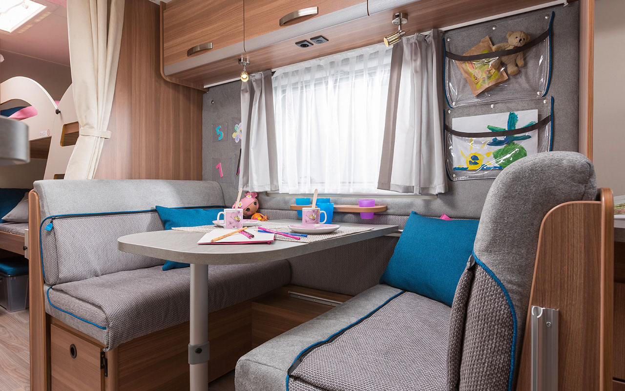 Auch Kinder sollen sich im Camping-Urlaub wohlfühlen, doch die Einrichtungen von Wohnwagen und Wohnmobilen sind in der Regel eher auf Erwachsene abgestimmt. Weinsberg hat daher in einem Kooperationsprojekt mit der Fachzeitschrift Caravaning für seinen Wohnwagen CaraOne und das Wohnmobil CaraHome die Ausstattungspakete Weinsberg CaraKids entworfen. Diese Pakete verwandeln die mobilen Heime im Handumdrehen in bespielbare Räumlichkeiten mit vielen Details, die zum Vergnügen und zur Sicherheit der Kinder beitragen. Rausfallschutz am Bett, zusätzliche Tritte, Hocker mit inte griertem Stauraum, eine Tafelfolie, die mit Magneten haftet, zusätzliche Steckdosen und vieles anderes mehr gehören zu den Paketen. Alles liebevoll gestaltet und in Weinsberg-Qualität hochwertig verarbeitet.