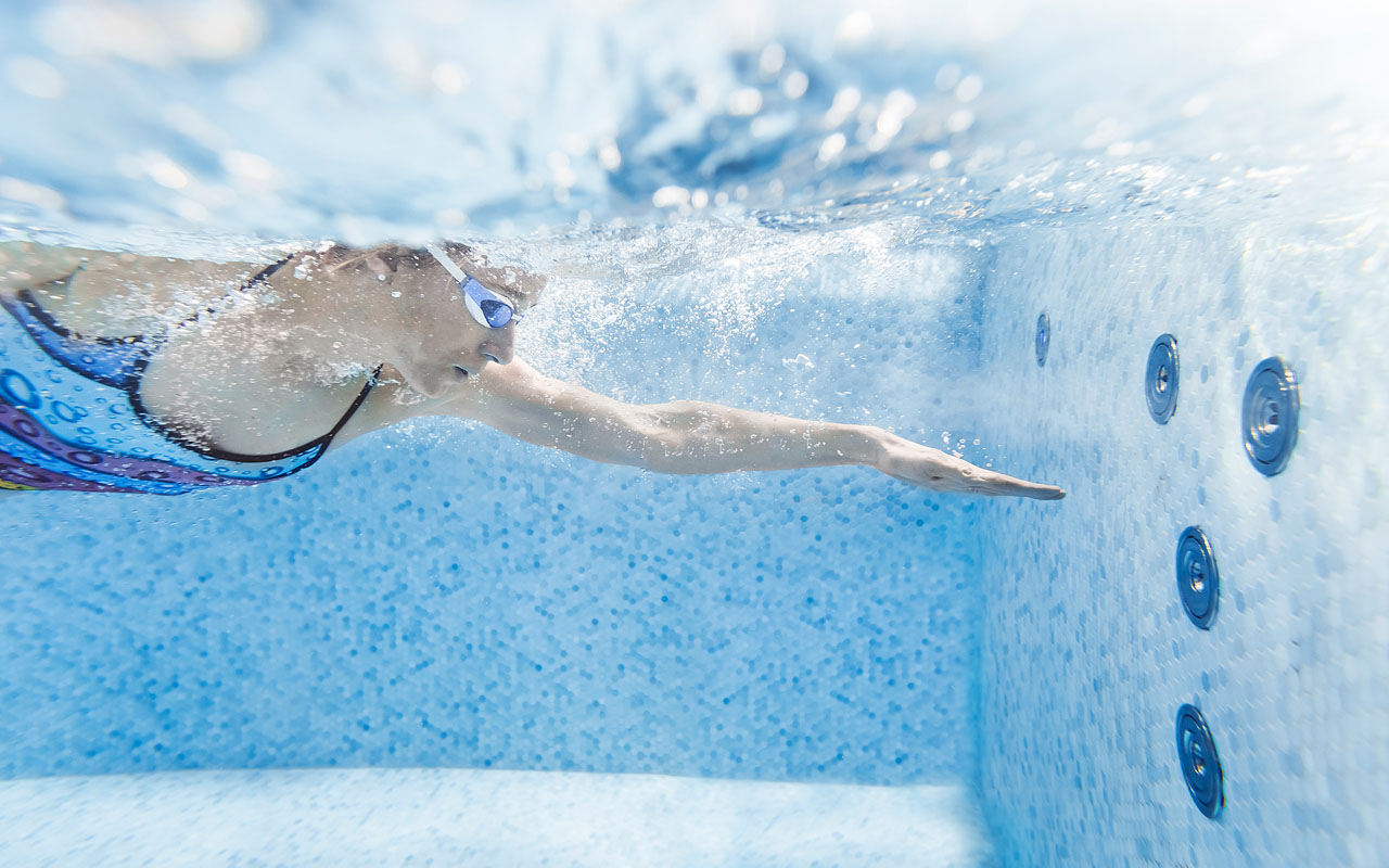 + per Fingertip wahlweise kontinuierliches Gegenstromschwimmen oder entspannende Massage
