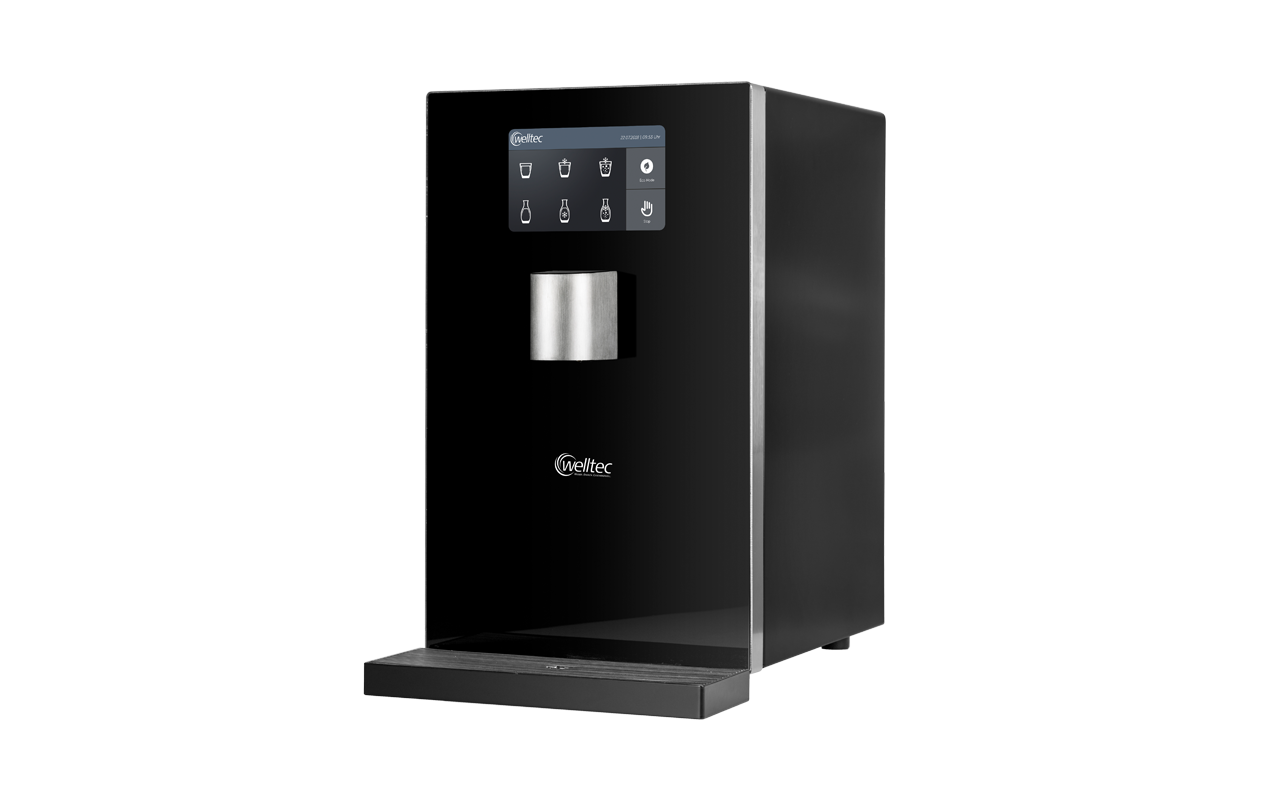 Leitungswasser ist eines der am besten kontrollierten Lebensmittel in Deutschland, doch man kann es noch verbessern: Der Wasserspender Welltec CUBE Comfort bereitet das Wasser in gewerblichen Objekten mit Kalkfilter und Desinfektion durch UV-Licht auf und kann durch das Versetzen mit Kohlensäure auch noch Sprudel produzieren. Dazu setzt der Wasserspender auf einen Festwasseranschluss. Bedient wird das Gerät durch einen komfortablen, sieben Zoll großen Touchscreen, wodurch sich auch gleich eine edel wirkende Optik ergibt. Das beste: Bei jeder Raumtemperatur kommen pro Stunde bis zu 60 Liter Wasser einstellbar erfrischend kühl aus dem Hahn – und damit auch direkt und gesund aus der Wasserleitung.
