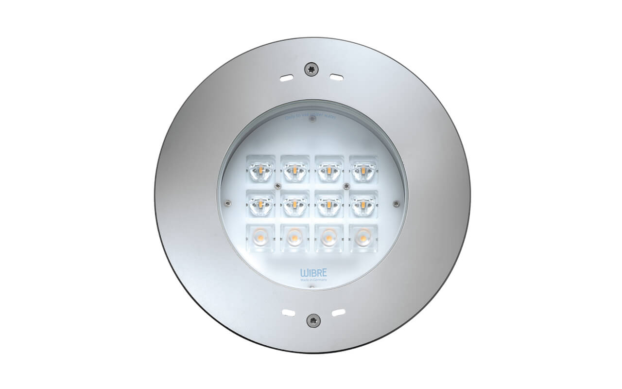 Herkömmliche Unterwasser-Halogenscheinwerfer mit 400 Watt kann der Wibre 4.0292 mit LED-Technologie mit einem Lichtstrom von bis zu 6.900 Lumen ersetzen – und braucht dabei in der einfarbigen Version gerade mal 47 Watt.