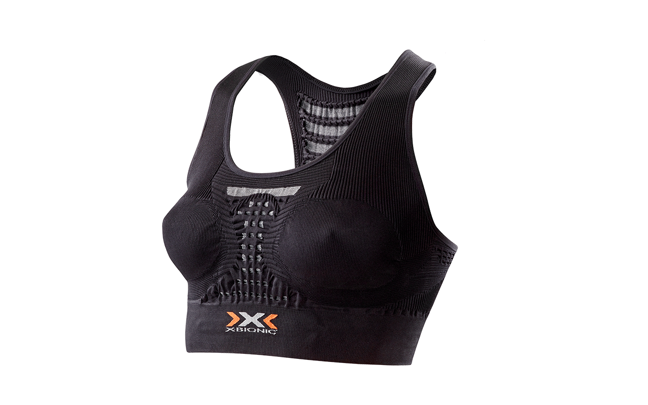 Der „Energizer Sports Bra“ von X-BIONIC® überzeugt durch optimalen Halt, seine aktive Klimasteuerung und höchsten Tragekomfort. Das 3D-BionicSphere® System sorgt im Brustbereich auch bei hoher körperlicher Anstrengung für angenehme Kühlung. Die x-förmige Konstruktion stabilisiert das Brustgewebe optimal und wirkt Schwingungen entgegen. Um Druckstellen zu vermeiden und sicheren Halt zu garantieren sind die ergonomisch geformten Träger des „Energizer Sports Bra“ extra breit ausgelegt.