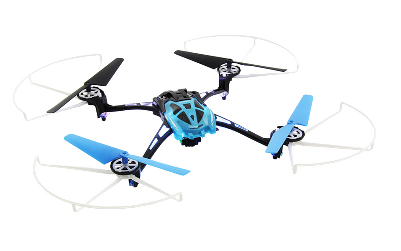Hoher Bedienkomfort zeichnet den Quadrocopter mit Kamera 15014000 aus dem Hause XciteRC aus – das gilt auch für Anfänger. Mit dem neuen 6-Achsen-Gyrosystem ist die Drohne leicht zu steuern. Die Fernbedienung ist wie ein Gamepad gestaltet und deshalb schnell intuitiv zu bedienen. Auf die Frage: „Wo ist rechts und links?“, die vor allem bei Anfängern im Eifer des Fliegens immer wieder auftaucht, bietet der Quadrocopter eine einfache Antwort: Den Headless-Mode. Damit fliegt der Copter immer aus Pilotensicht. Damit bleiben rechts und links immer gleich, auch wenn die Drohne zurück zum Piloten fliegt. Geübte Piloten fliegen auf Knopfdruck Loopings.