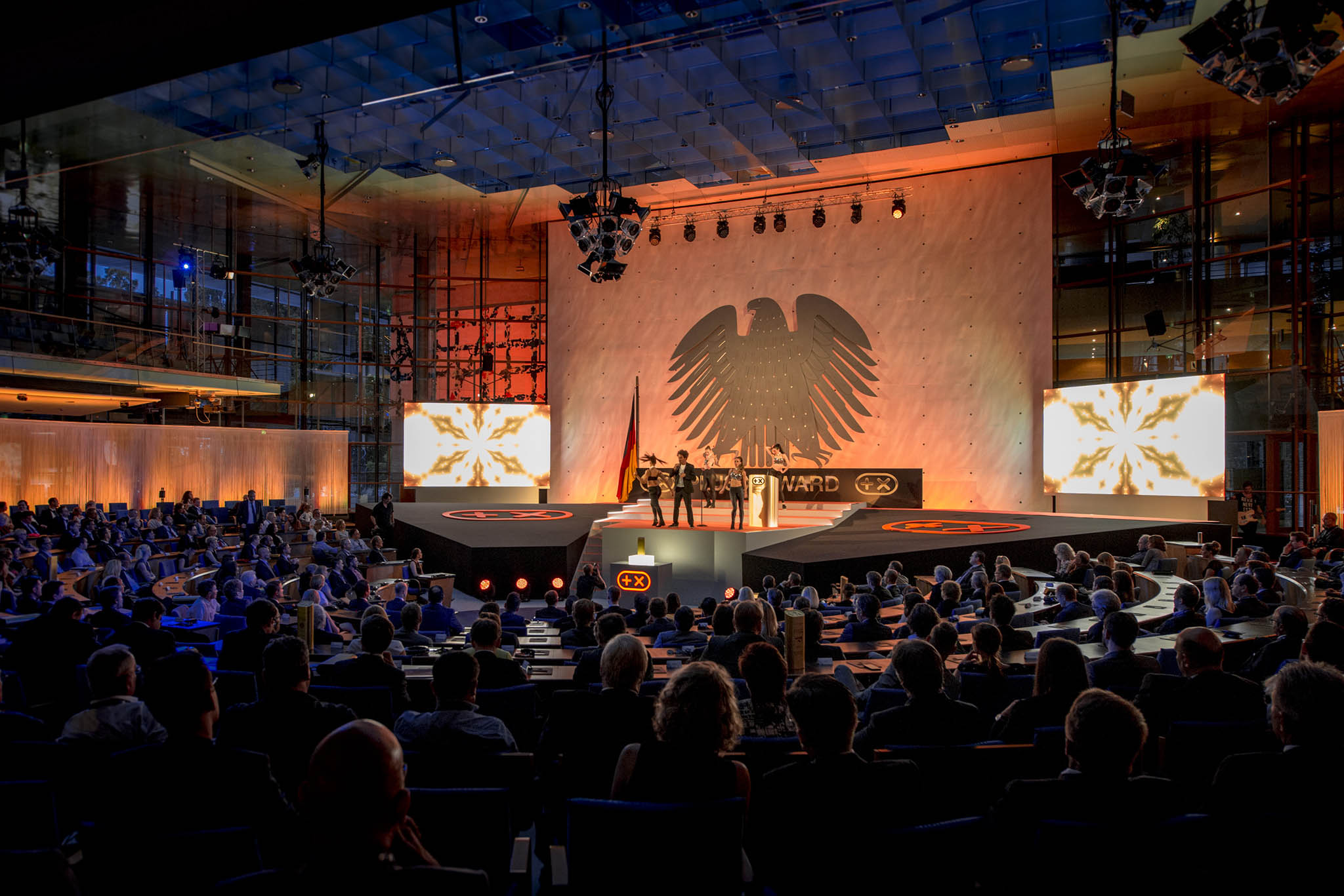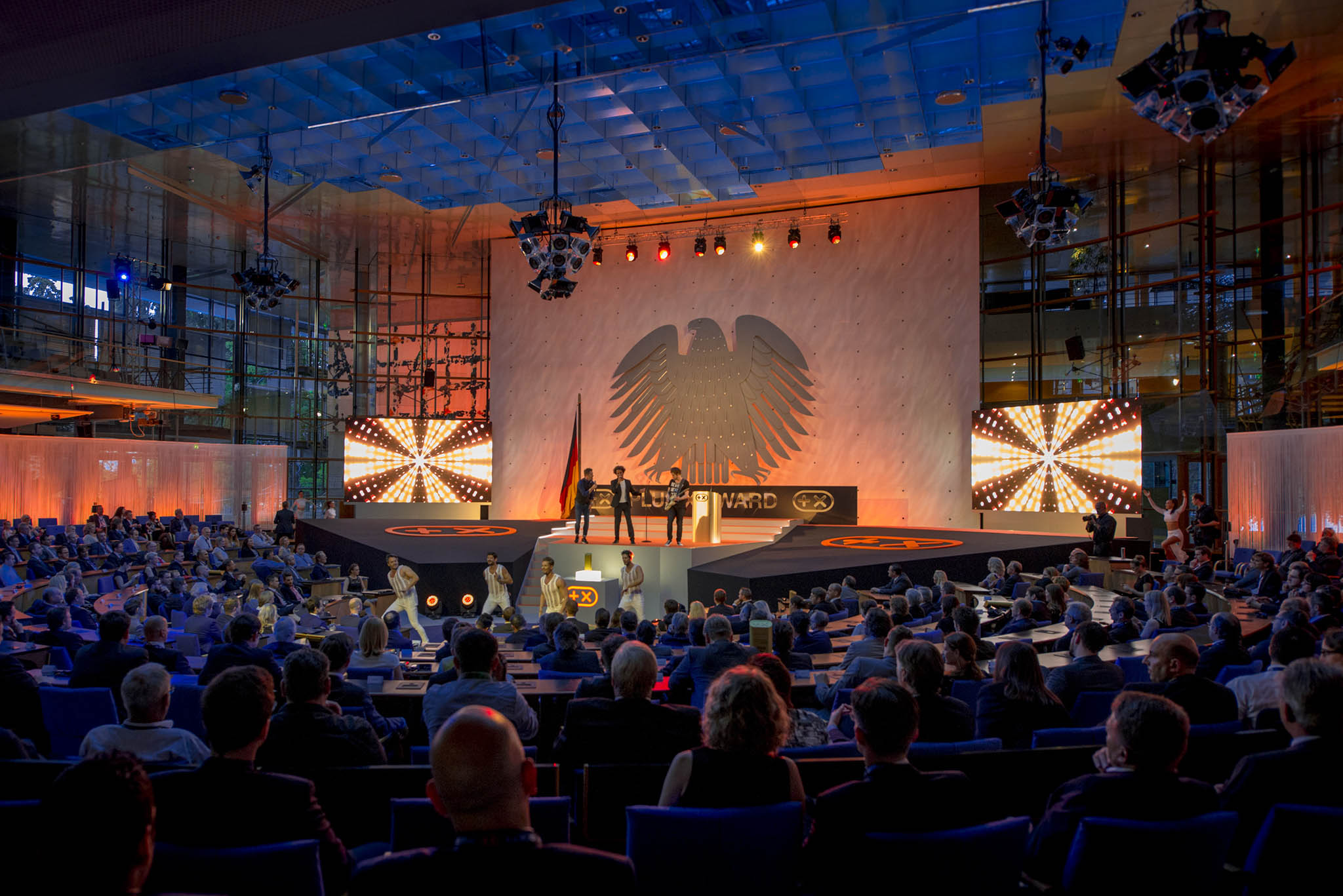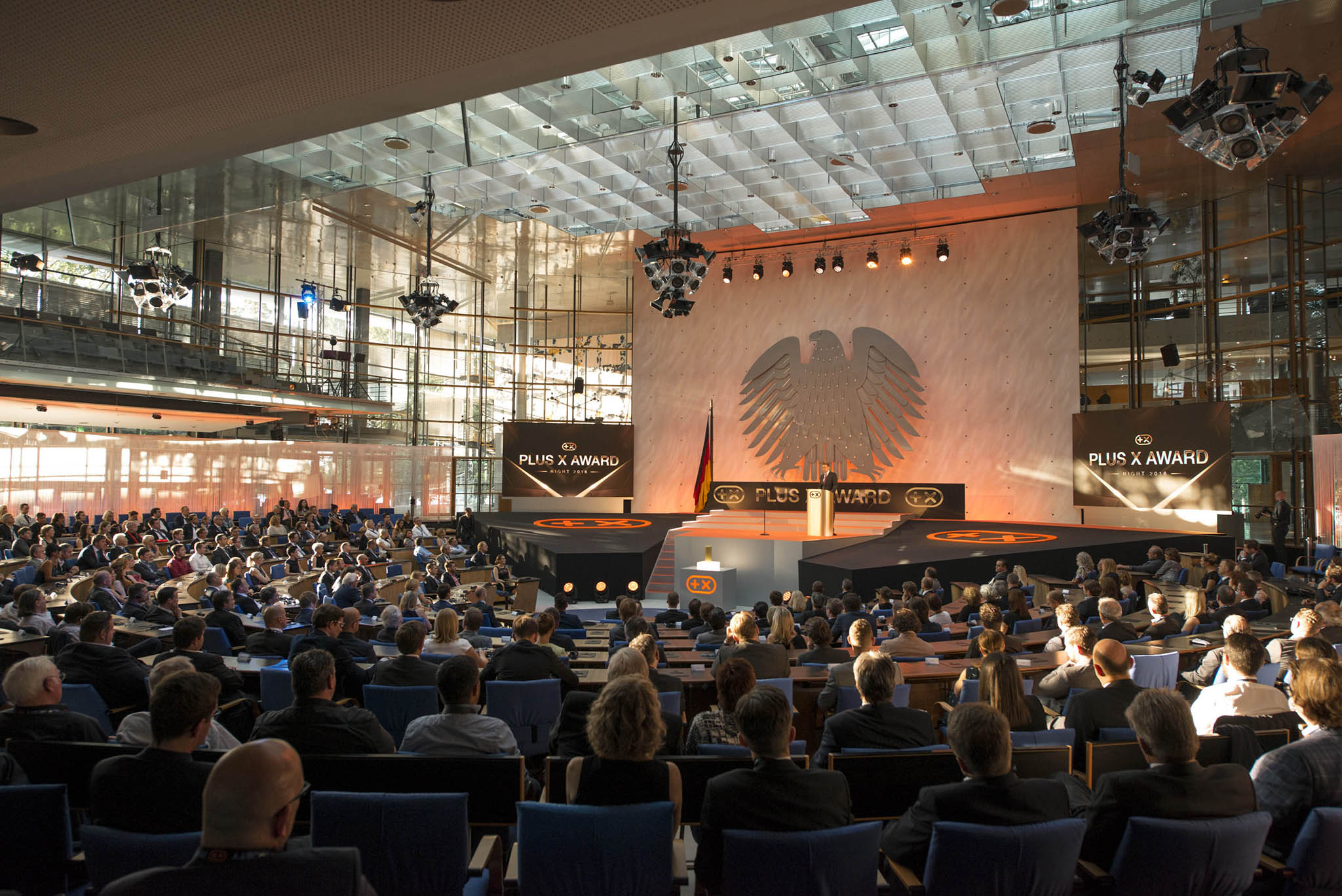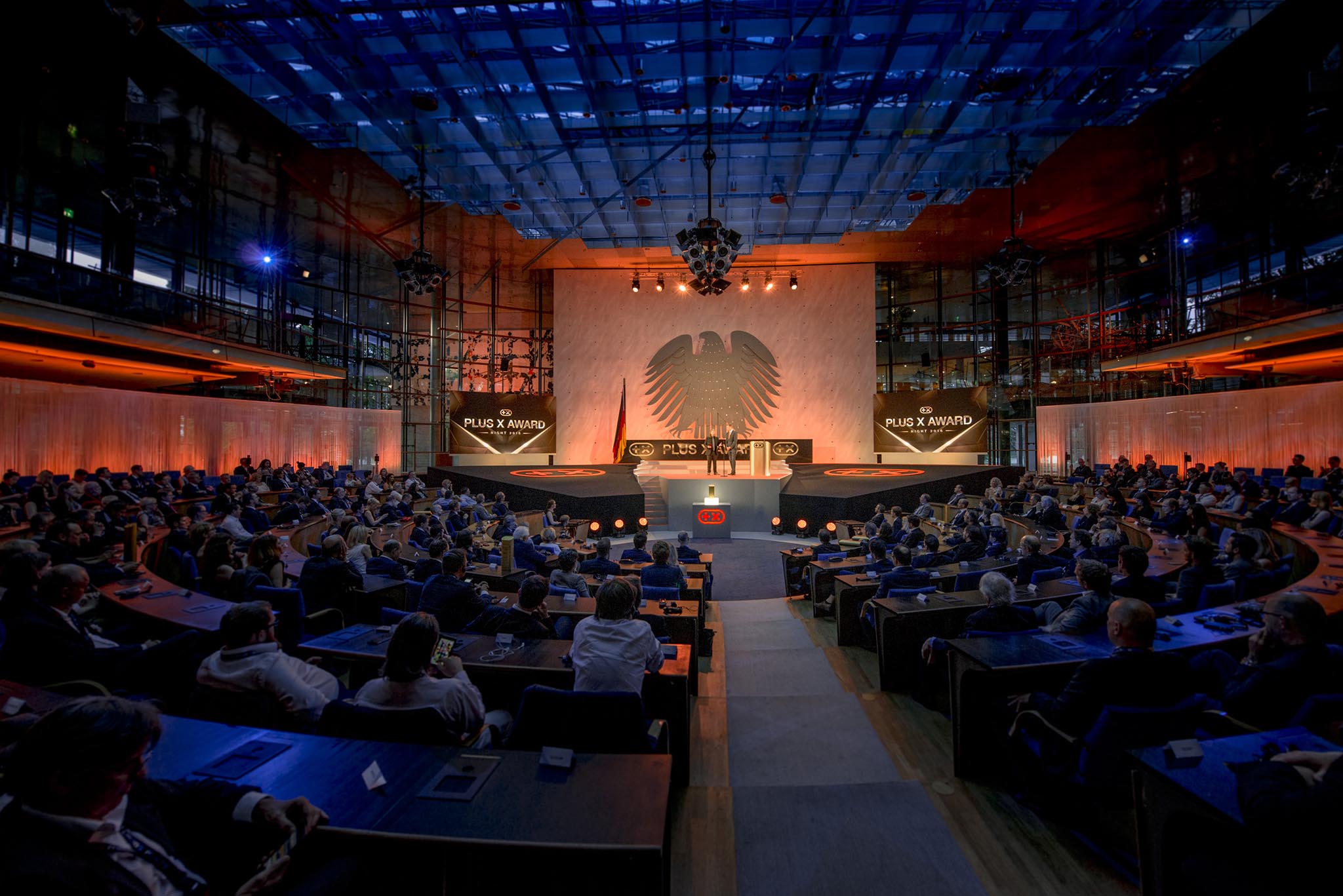 Nach einer leidenschaftlichen Eröffnungsrede von Consumer-Electronics-Experte Jürgen Imandt, empfing Donat Brandt, Gründer und Präsident des Plus X Award und Gastgeber des Abends, die zahlreichen und branchenübergreifenden Top-Entscheider aus Industrie, Handel und Medien. Zum dritten Mal fand die Preisverleihung des weltweit größten Innovationspreises für Technologie, Sport und Lifestyle im geschichtsträchtigen und eindrucksvoll illuminierten Plenarsaal des Ersten Deutschen Bundestages statt.
