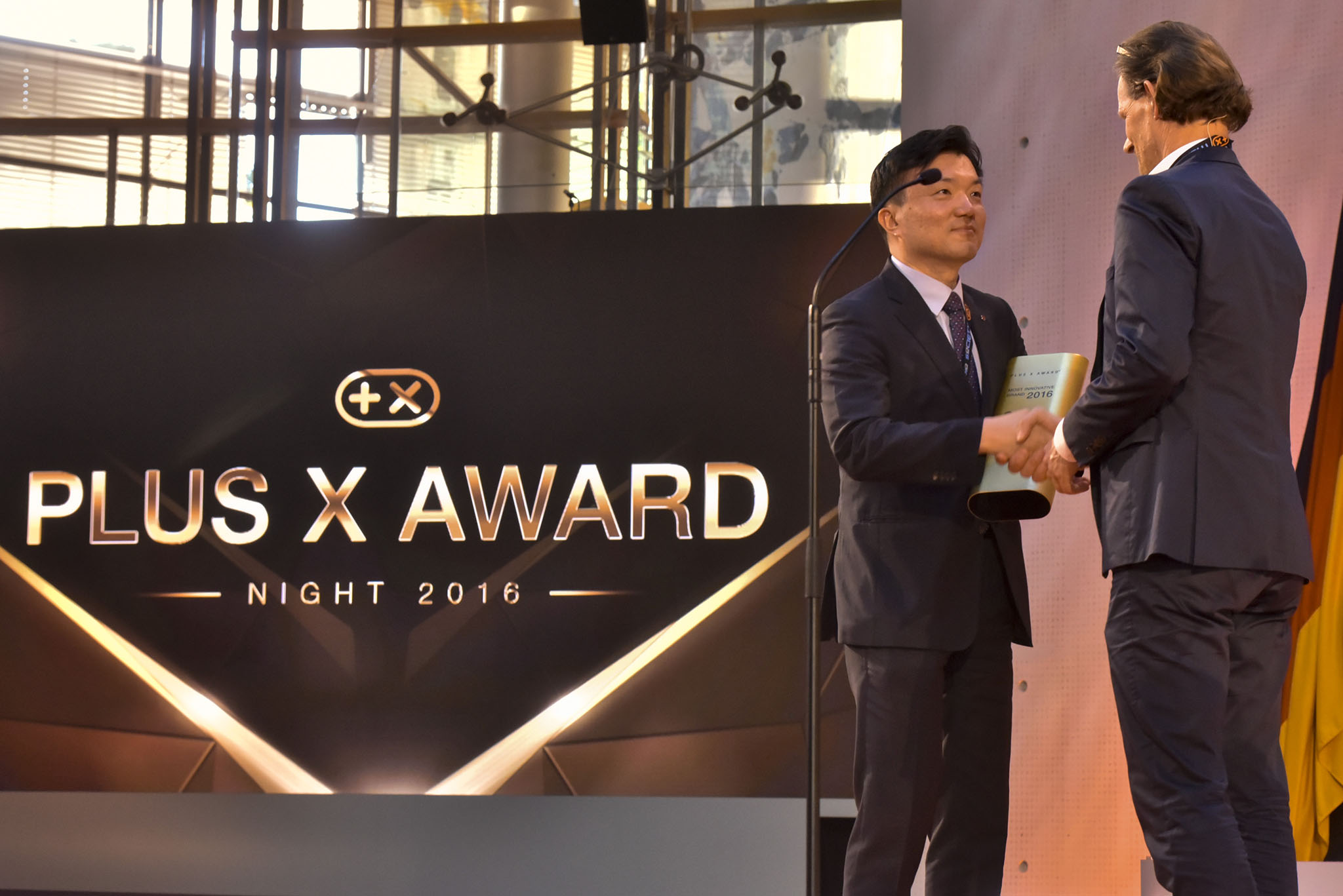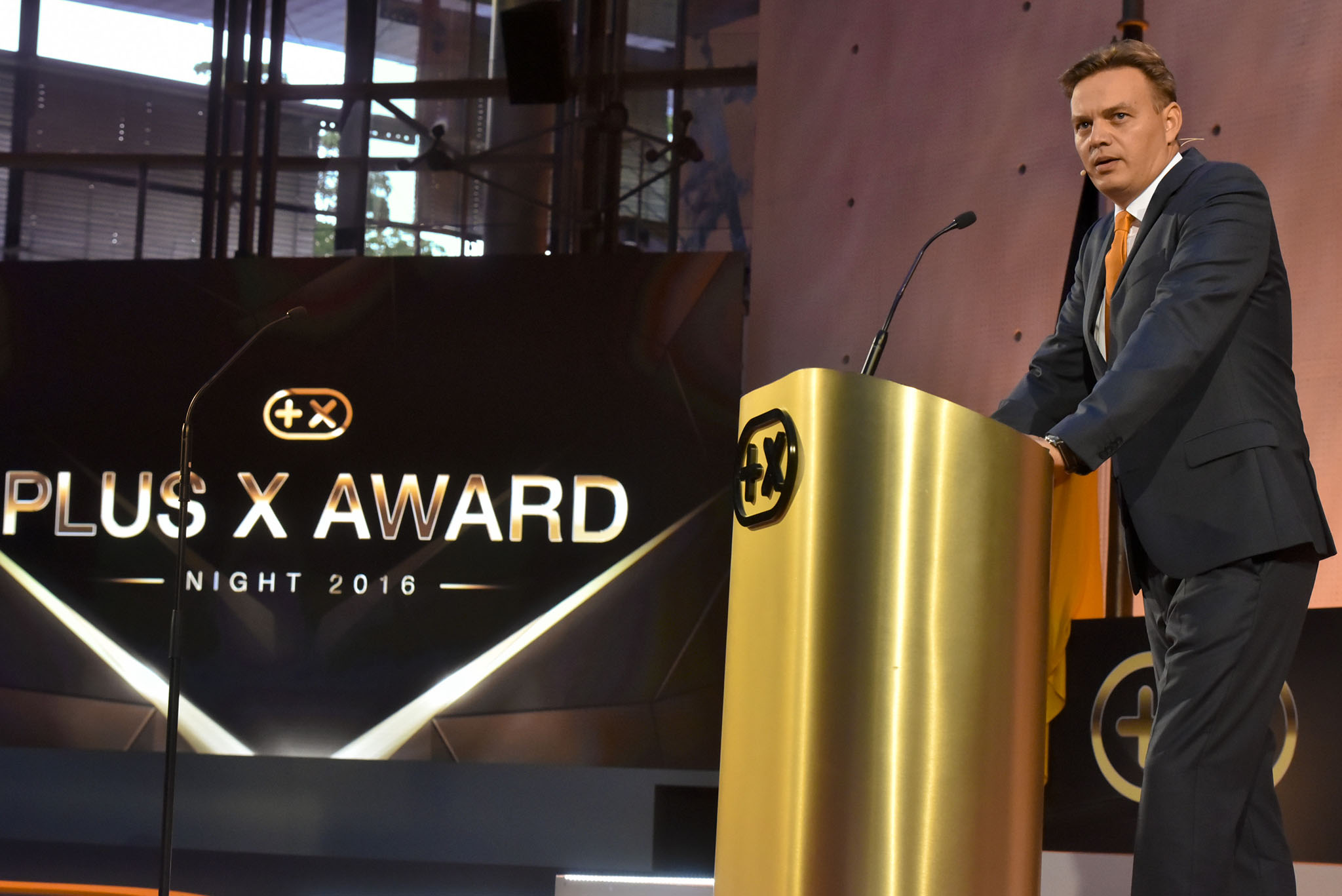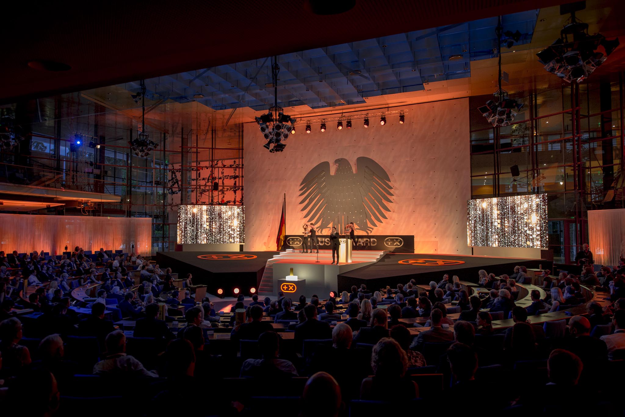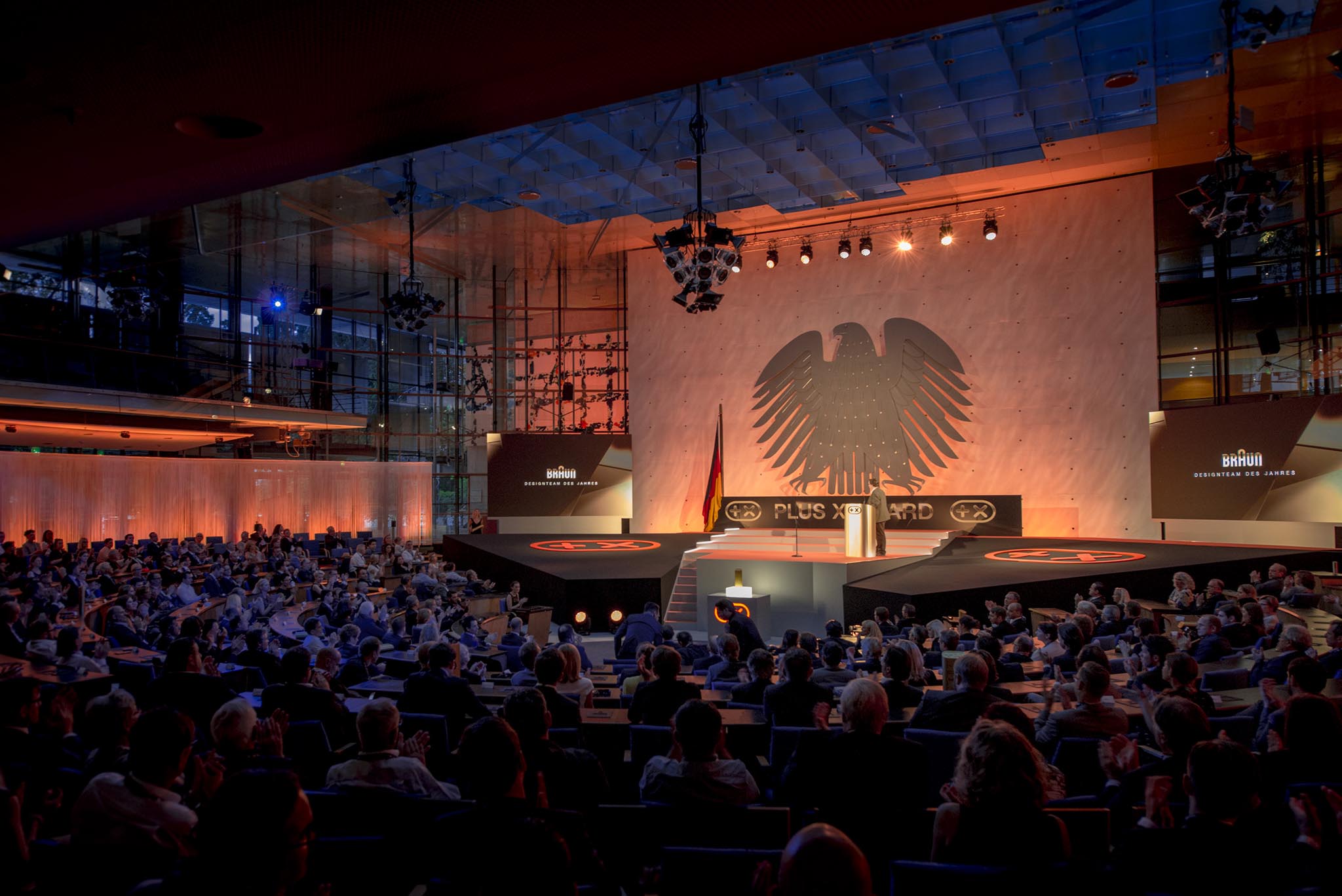 Am Ende des Abends konnten 26 Marken die goldene und fast 7 kg schwere Trophäe aus den Händen der Laudatoren, allesamt Juroren und Botschafter des Plus X Award, in Empfang nehmen. Die imposant gestaltete Bühne, im aufwendig für das Event umgebauten, denkmalgeschützten Plenarsaal, bot den perfekten Rahmen für einen stilvollen Abend mit Premium-Charakter.