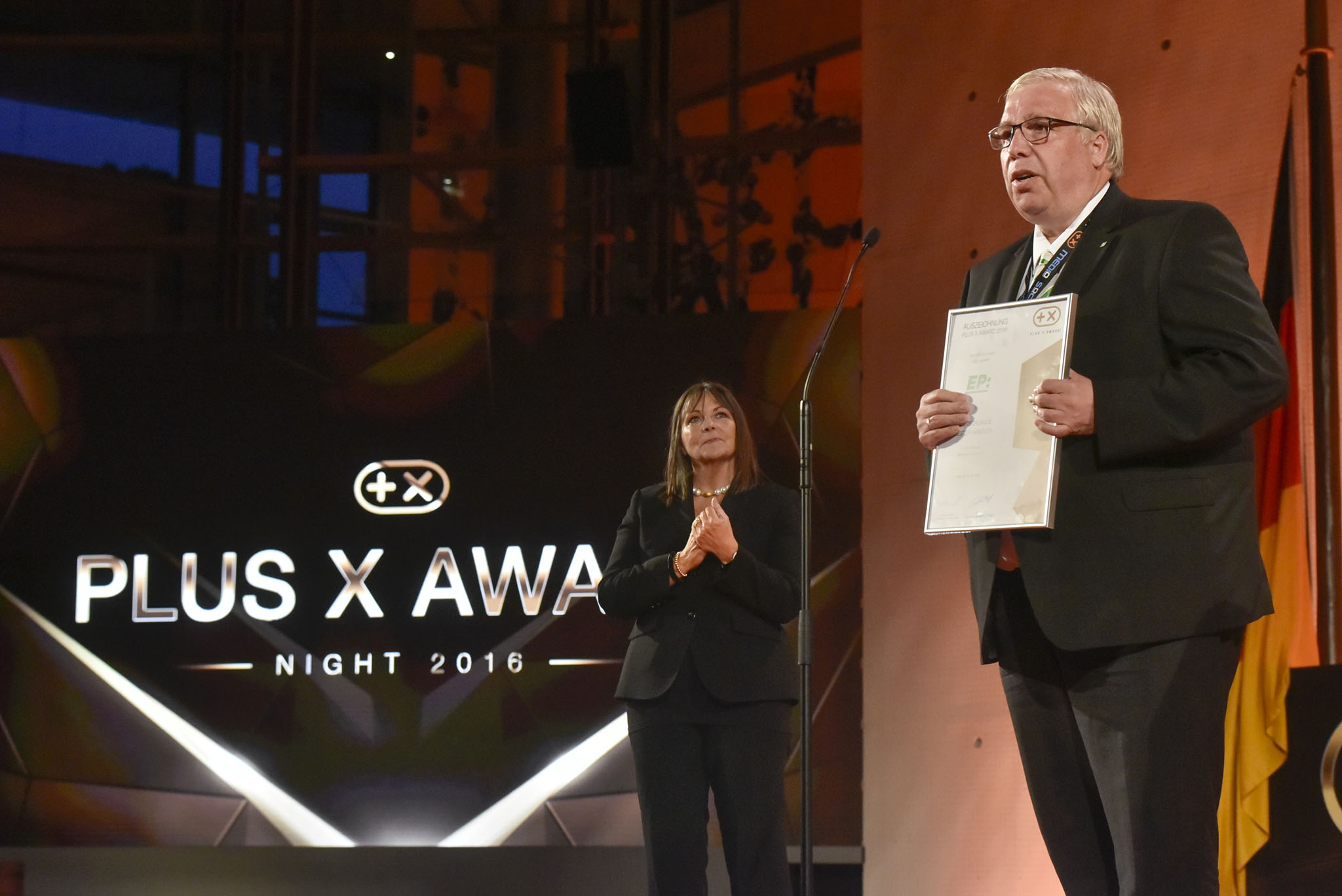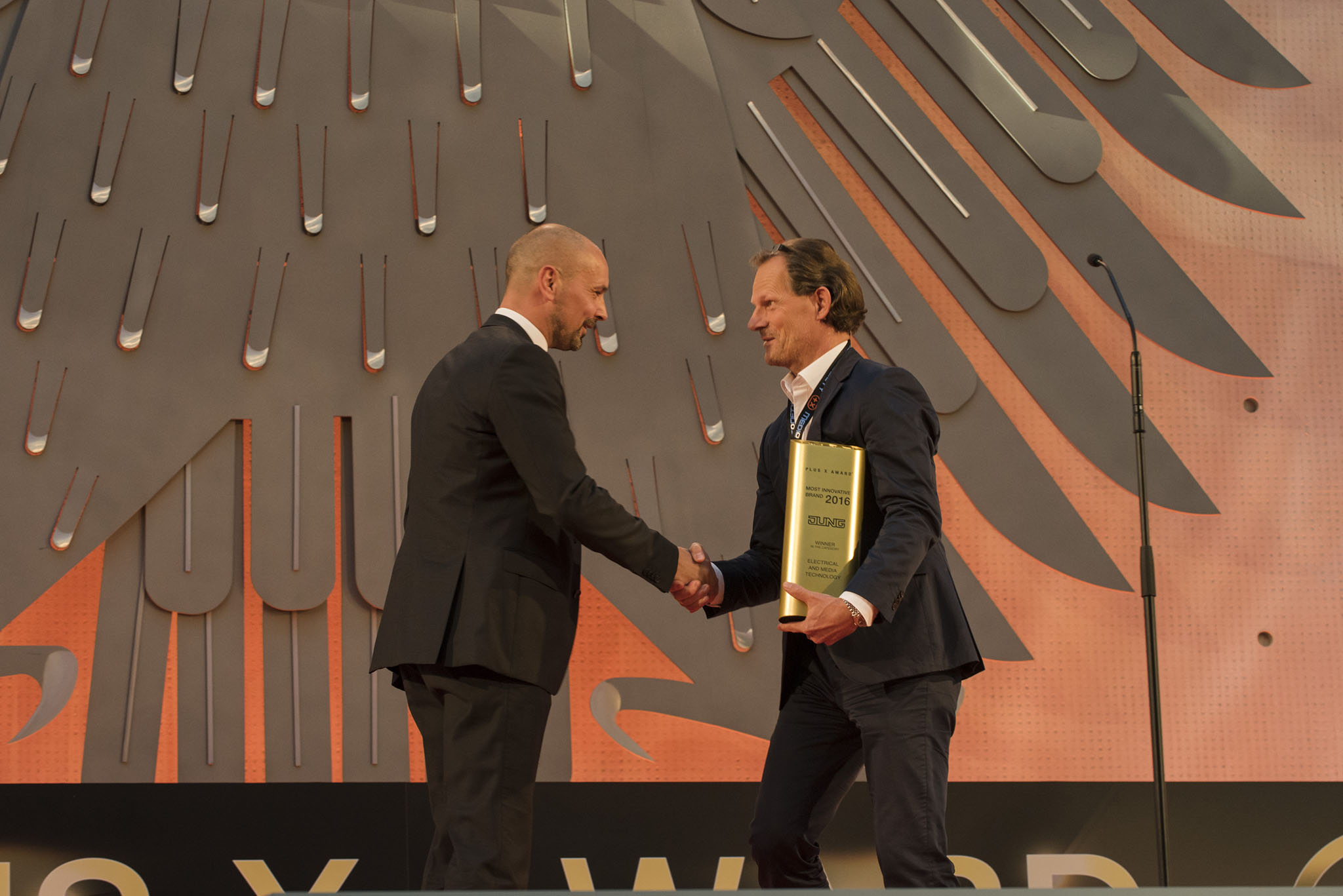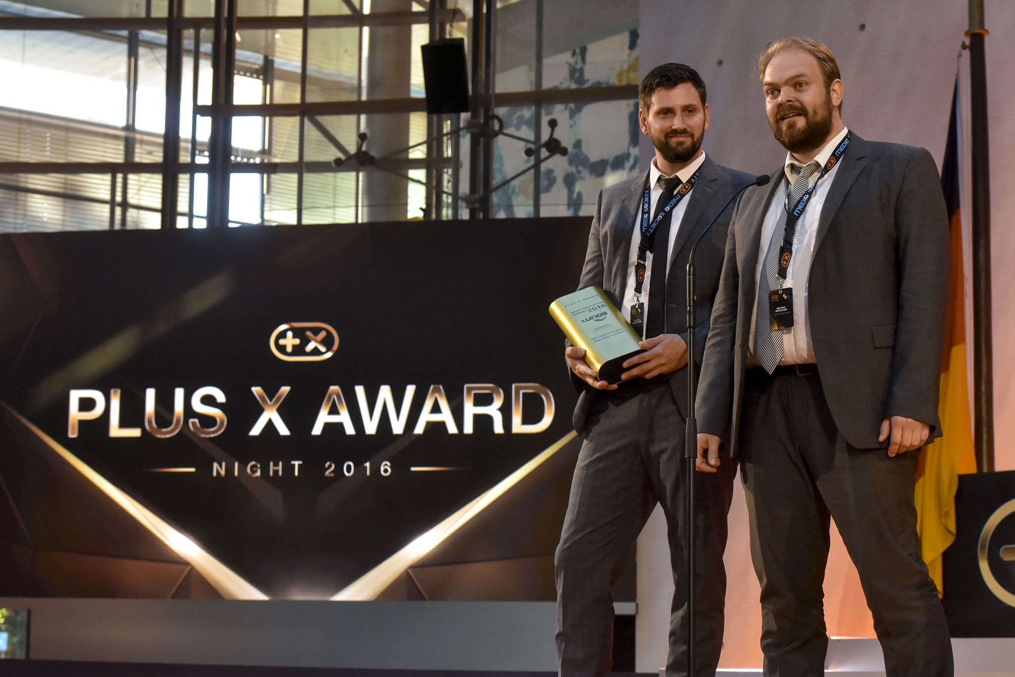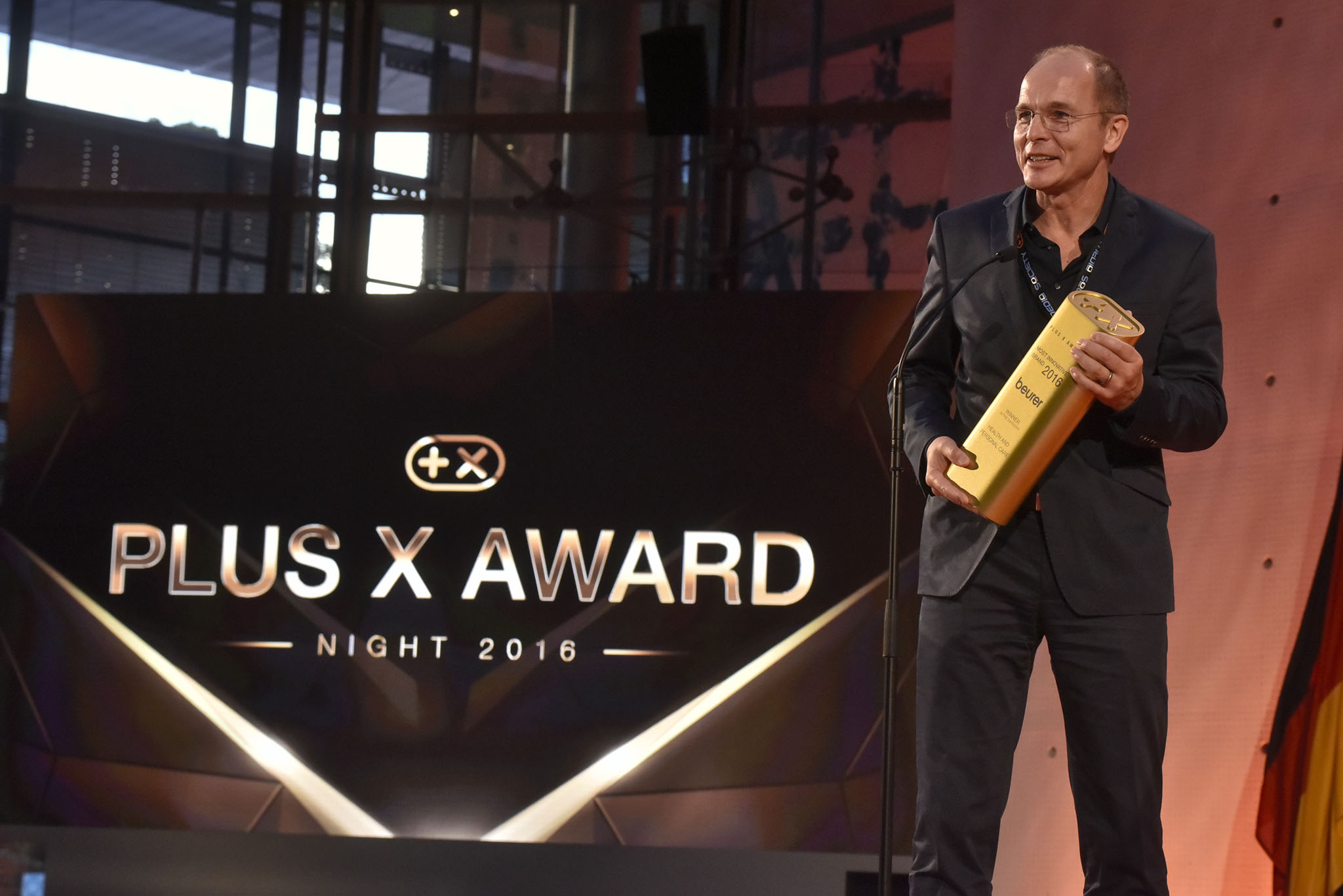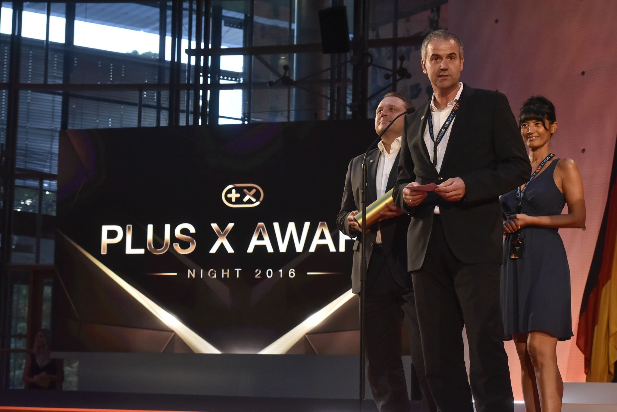 Am Ende des Abends konnten 26 Marken die goldene und fast 7 kg schwere Trophäe aus den Händen der Laudatoren, allesamt Juroren und Botschafter des Plus X Award, in Empfang nehmen. Die imposant gestaltete Bühne, im aufwendig für das Event umgebauten, denkmalgeschützten Plenarsaal, bot den perfekten Rahmen für einen stilvollen Abend mit Premium-Charakter.