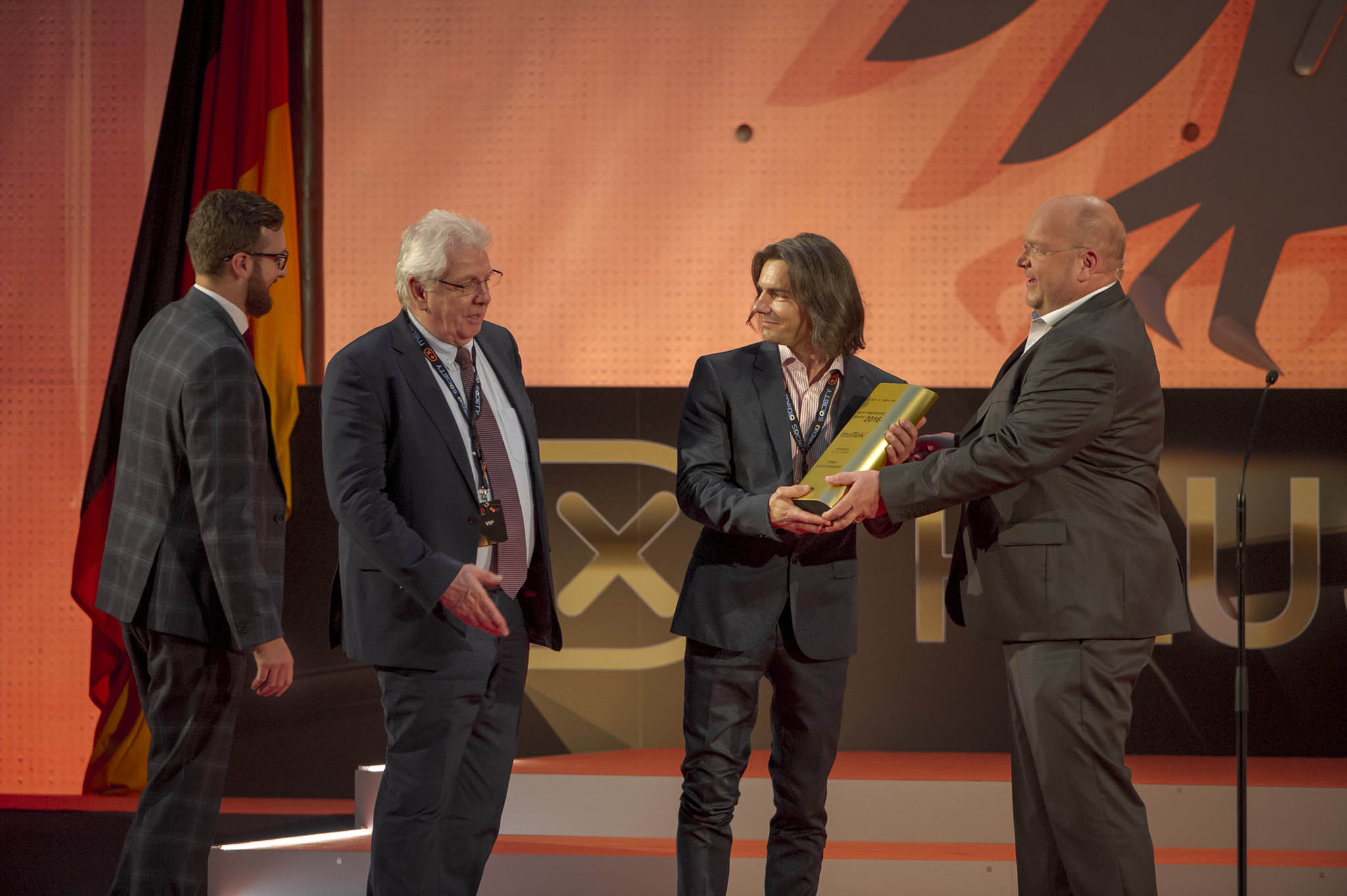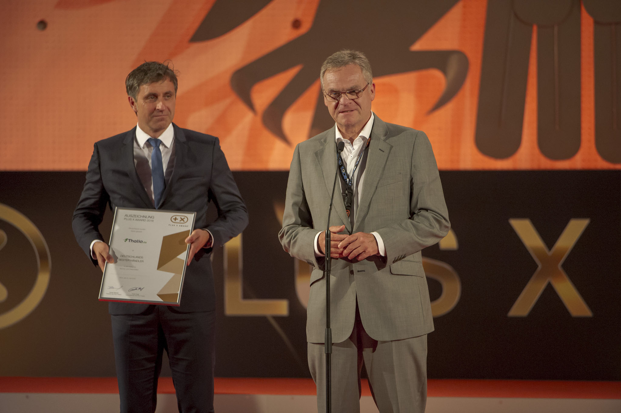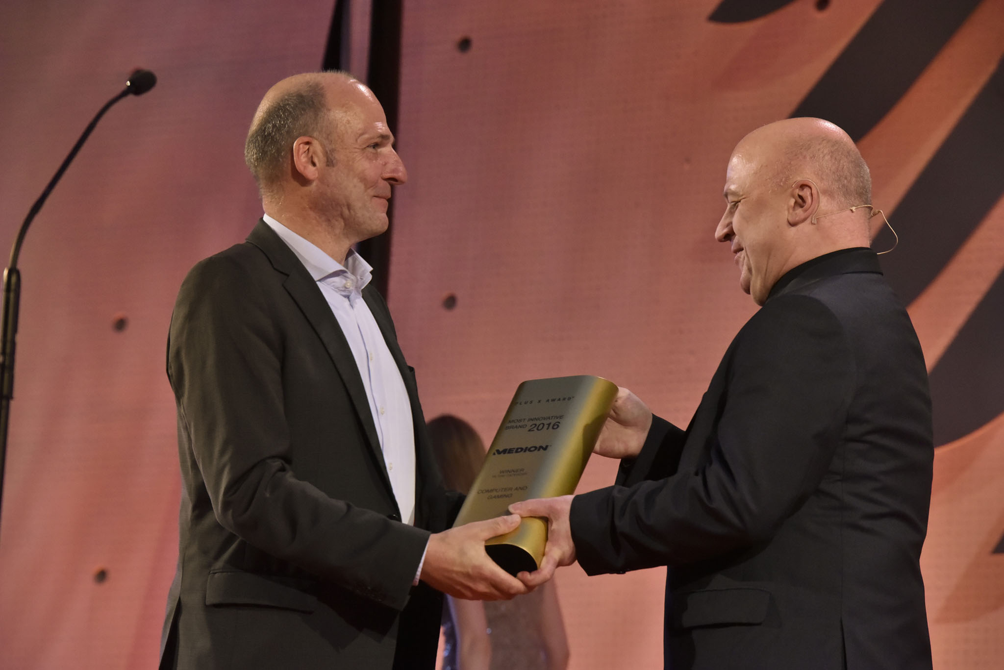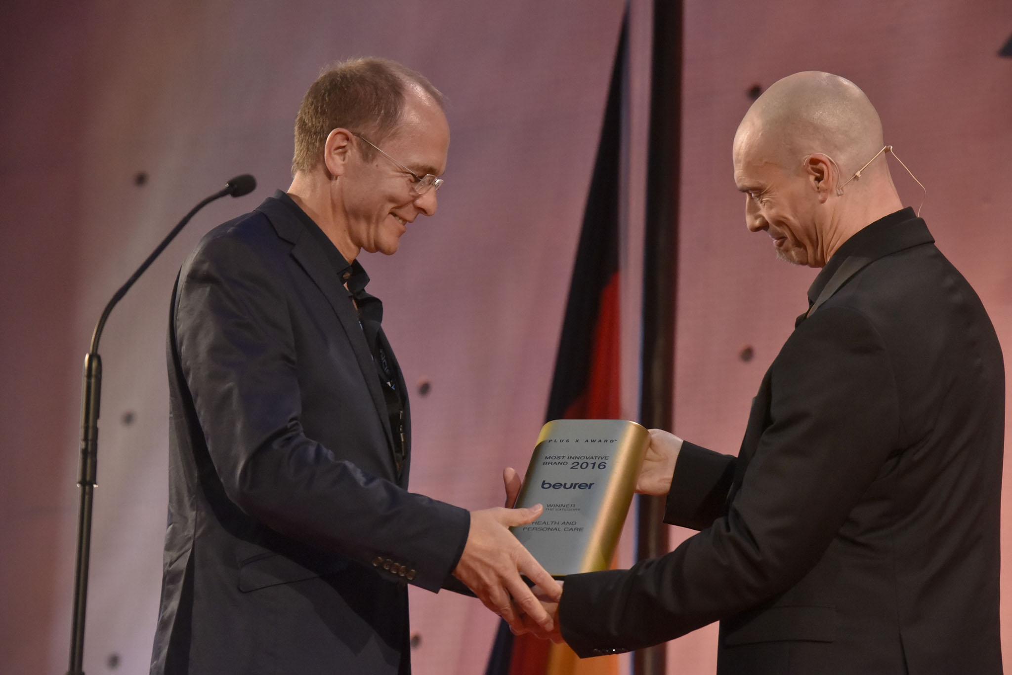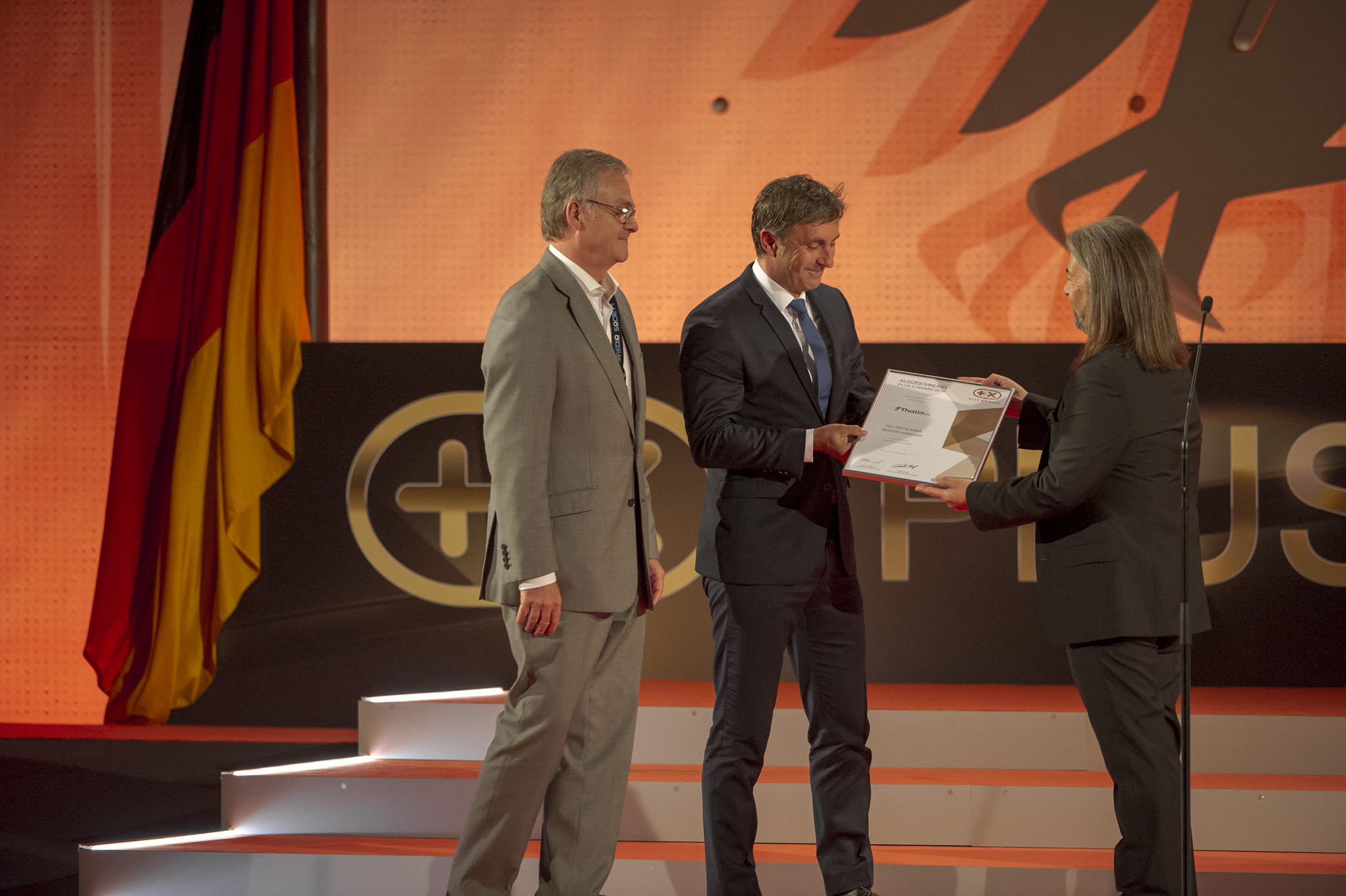 Am Ende des Abends konnten 26 Marken die goldene und fast 7 kg schwere Trophäe aus den Händen der Laudatoren, allesamt Juroren und Botschafter des Plus X Award, in Empfang nehmen. Die imposant gestaltete Bühne, im aufwendig für das Event umgebauten, denkmalgeschützten Plenarsaal, bot den perfekten Rahmen für einen stilvollen Abend mit Premium-Charakter.