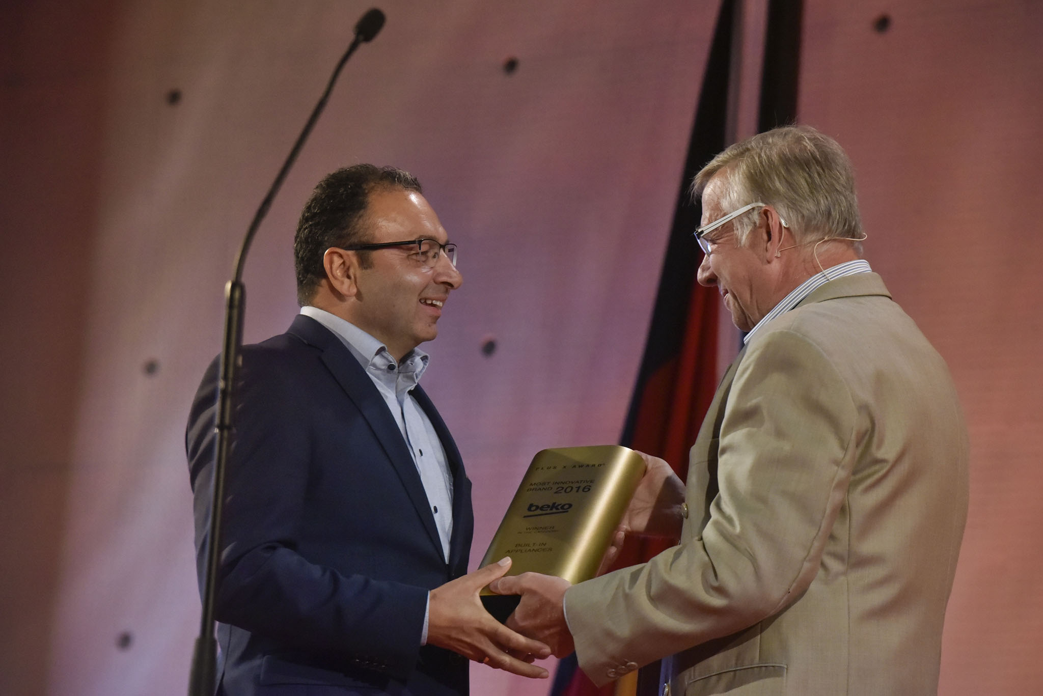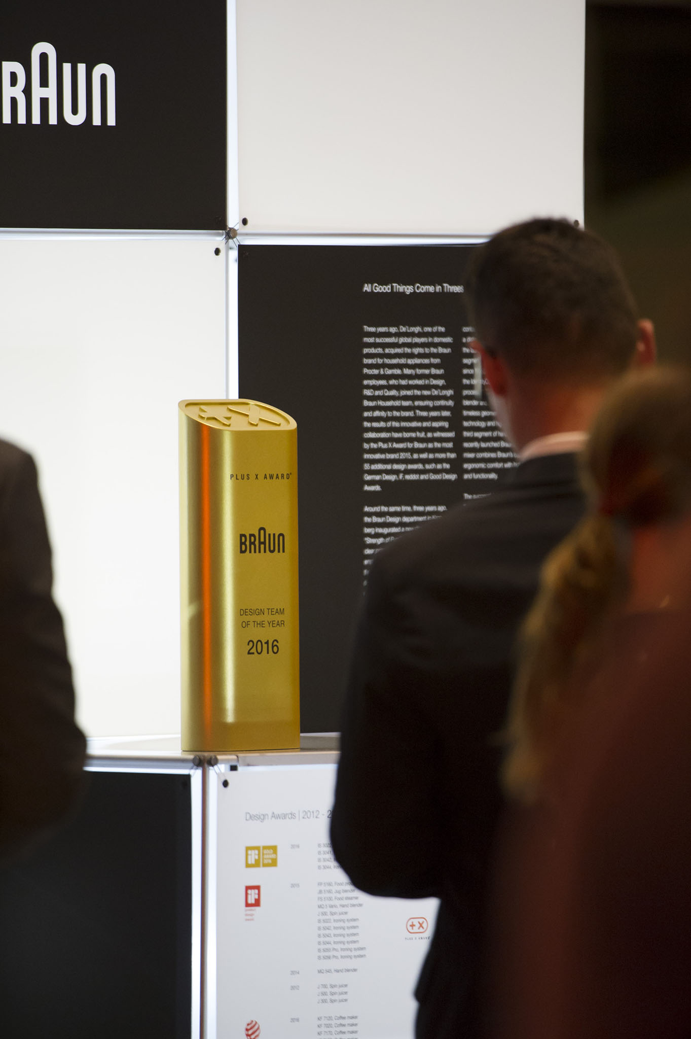 Braun wurde mit der Sonderauszeichnung „Designteam des Jahres“ geehrt. Duy Phong Vu, Head of Design der Marke Braun, nahm die Trophäe aus den Händen von Frank Kreif, Vorsitzender der Plus X Award Jury, entgegen.