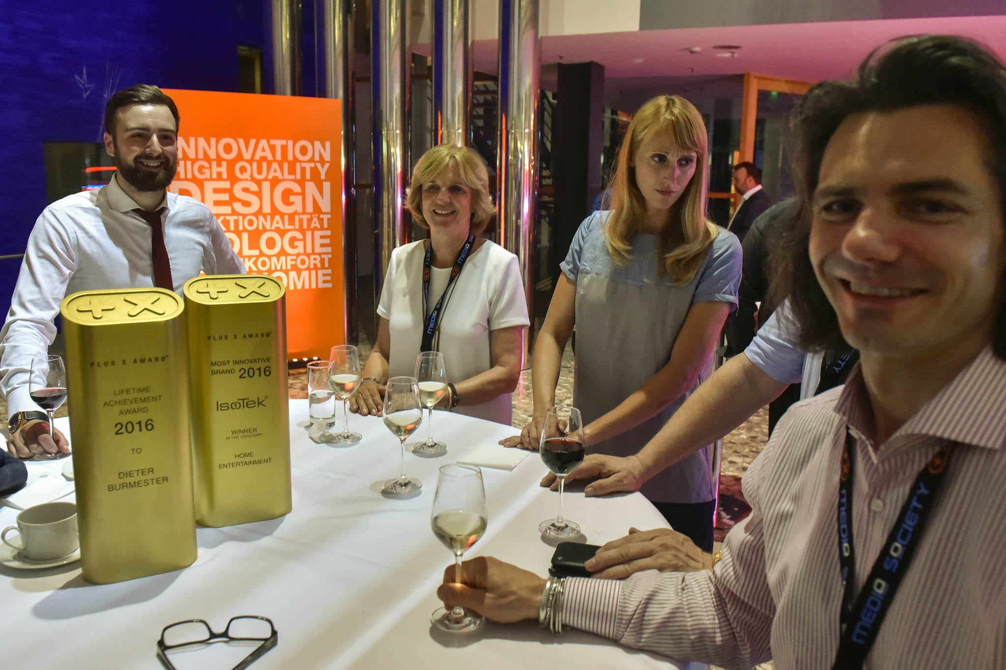 Der emotionalste Teil des Abends war die posthume Ehrung des im vergangenen Jahr verstorbenen High-End-Audio-Pioniers Dieter Burmester mit dem „Lifetime Achievement Award“. Die Witwe von Dieter Burmester, Marianne Burmester, nahm die Trophäe für das Lebenswerk aus den Händen von Plus X Award-Präsident Donat Brandt entgegen. Erstmals wurden zudem einige Dienstleistungs- und Handelsunternehmen auf der Preisverleihung des Plus X Award ausgezeichnet. Neben der Auszeichnung für „Deutschlands beste Händler“ konnte auch „Aldi Talk“ als „Mobilfunkprovider des Jahres“ eine der begehrten Auszeichnungsurkunden mit nach Hause nehmen.